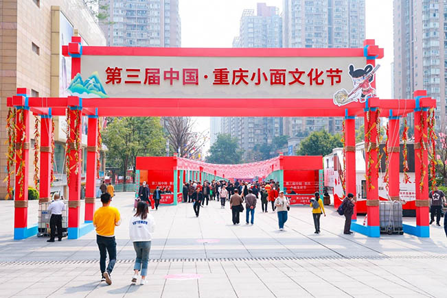 第三届中国·重庆小面文化节主活动阶段为期5天(3月15日-19日),活动以“重庆小面、面行天下”为主题,活动规模近43000㎡,集聚吸引全国各地60家小面产业供应链品牌,110个商家参展,汇集专业参展展会人员1000余名、广大消费市民100万人次。本次重庆小面文化节遵循“一二三产联动、线上线下互动、商文旅体融合”总体思路,围绕以文兴业、以文惠民,汇集全国面业优质资源,聚势赋能小面产业发展,为重庆小面产业链市场主体带来了一次供需对接的展销盛会,为广大市民带来了一场饕餮小面美食和文化盛宴,打造出了一个全民参与、全民互动的城市消费节日。